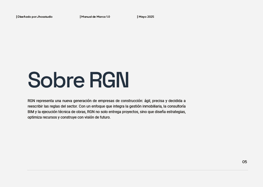 RGN representa una nueva generación de empresas de construcción: ágil, precisa y decidida a reescribir las reglas del sector. Con un enfoque que integra la gestión inmobiliaria, la consultoría BIM y la ejecución técnica de obras, RGN no solo entrega proyectos, sino que diseña estrategias, optimiza recursos y construye con visión de futuro.